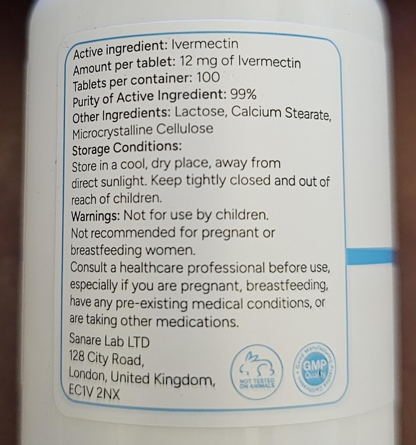 The bottle says 12 grams ivermectin. The pills are in good shape. Shipping was good. I wish there was a way to verify that it is actually ivermectin. As far as I know there in no way to tell for sure.